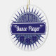 Modern och vintage i stil designad för dagens dedikerade, hårdnackade Bunco-spelare! Blå och vit design innehåller tre lyckade dice. Underbara Bunco-prydnaden för december månad.