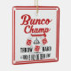 Dekorera ditt helgdagträd med din mycket egna Bunco helgdagprydnad. Designstil är vintage som inkluderar en Bunco sätta en klocka på och Bunco tärning in i designen. Text läser: Den Bunco mästare, kastar hårt, en Bunco är endast ett kast bort. Rolig Bunco design.