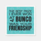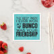 Bold och modern Bunco-citat till nästa Bunco-party-kväll. Citatet i den moderna typografin i stil lyder: "Det bästa pris jag någonsin vann i Bunco var din vänskap." Perfekt cocktail-napkin till dina Bunco-flickor.