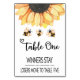 Hjälp spelare från Bunco att byta från bord till bord med fantastiska Bunco bord-kort. Den här är till Queens Bees of Bunco. Solrosor och bin med vattenfärg låt oss spelare som vet att de befinner sig vid bord 1. När spelspelet hindrar förlorarna att flytta till bord fem och vinnarna stannar vid bord ett.