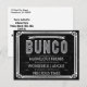 Är du värd för en Bunco party? Starta högerna party med de här vykorten för inbjudan till roligt Bunco. Skicka dem till din vän eller lämna ut dem på Bunco-natten. Snyggtens svarta och vita design mönstras efter att en begagnad vintage stil poster eller annonserar. Bunco-inspirerad design har ett dekorativt gräns, dekorativt band, inslag och ord:Bunco, Marvelous Friends, Wonderful Laughs and Precious Times. Leta efter samma design på andra produkter.
