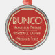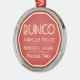 Bunco för design för vintagestilgrafik prydnad. Presenterar en stilfull randig bakgrund med en baneremblem. Text läser: Bunco, förträffliga vänner, underbara skratt och dyrbara tider. Den Bunco prydnaden kan användas som en Bunco utmärkelse eller en Bunco pris. Visa din Bunco prydnad i ditt kontor, kök, på din Bunco händelse eller på ett helgdagträd.