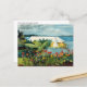 Ett finkonst-vykort med den realistiska akvarellmålningen, Blomsterträdgård och Bungalow, Bermuda (1899), av Winslow Homer (1836-1910), en amerikansk konstnär. Ett tropiskt landskap med livfulla röda kannaliljor och en fängslande utsikt över havet.