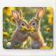 Två söta bunnier kapas mitt i fält av solblommor, som var och en bär en blommigt krona och delar en enda solrosliknande blommar