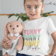 Bunny Babe Cute Modern Girly Påsk Personlig T-shirts har den moderna texten "Bunny Bunny Bunny Babe" i rosa, turkos och gult, typografi och personlig med ditt namn genom att redigera texten i textrutan. Designad av ©Evco Helgdagars www.zazzle.com/store/evcoholidays