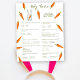 Könsneutrala inbjudningar till babydusch. Ett exempel på en vattenfärgsbunny (kanin) med morot i tassar och många morötter i orange färg. Matchande objekt är tillgängliga. SVAR NYCKEL: 1.d 2.d. 3.a 4.c. 5.c 6. 7. 8.c 9.c 10 b.