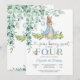 Celebrate your little ones special day with this charming bunny birthday invitation featuring a whimsical watercolor rabbit holding a balloon, surrounded by lush greenery and flowers. Perfect for a girls 4th birthday party, this sweet design adds a nostalgic touch reminiscent of Peter Rabbit. Personalize with your childs name, party details, and RSVP information to create a memorable keepsake. Ideal for spring, garden, or woodland-themed celebrations, this invitation sets the tone for a joyful gathering.