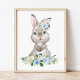 Bunny, Boskap, Blåa blommor, Boy Nursery Poster