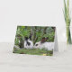 Ett par svarta och vita kaniner snurrar näsan till näsan, omgiven av greenery, i detta söta fotografi. Anpassa det här fotot på vilket sätt som helst...Du kan lägga till text eller bara lämna den som den är. Firar Alla hjärtans dag eller Kaninens år med den söta kaninen bild!