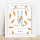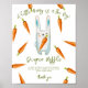 Könsneutrala inbjudningar till babydusch. Ett exempel på en vattenfärgsbunny (kanin) med morot i tassar och många morötter i orange färg. Matchande objekt är tillgängliga.