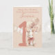 The soft watercolor design and gentle colors make it a delightful keepsake for parents, grandparents, and loved ones to cherish. Whether you’re gifting it to a baby girl or boy, this charming bunny card captures the joy and wonder of turning one.