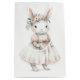 Den här berömvärda vita kaninen i en klänning är en söt vårillustration med hennes krona av blommor på huvudet.