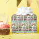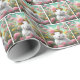 En vit kanin med halmsommarhatt i en trädgård med rosa blommor