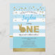 Bunny pojke 1:a födelsedag, blått och guld inbjudningar