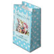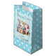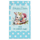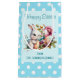 Det här är en söt Påsk-presentväska med en vattenfärgsbild av en knipa, Påskägg och blommor, med en blå och vit polka punkt gräns. Texten på påsen är anpassade med din egen.