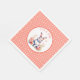 En söt liten kanin omgiven av rosa och korall och vita blommor i polka dots illustrerar babyduschservetter "Det är en flicka."