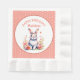 En söt liten kanin omgiven av rosa och korallblommor vattenfärgsillustration personlig födelsedagsfest pappra blöjor för en liten flicka.