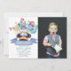 Den här söta pojkens fotoinbjudan på födelsedagen innehåller en kanin som tittar av en trollkarl med faux-/fejk-guld-stjärnor, buntar flaggor och färgstarka ballonger i vattenfärg. Baksidan har en vit bakgrund med polka dots. Anpassa efter dina behov. Du hittar fler matchande produkter i min butik.
