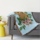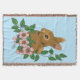 En söt brun kanin sitter bland rosa blommor i en ljusblå bakgrund