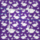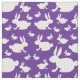 Fabric med vita silhuette-bunnier på lilans bakgrund.