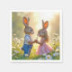 Pojkar och flickkaniner står mot varandra mellan daisy, där den ena erbjuder en blomma till den andra