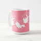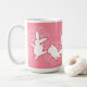 Bunny älskare eller koffeine älskare, detta vita mugg är en underbar gåva till båda två! God bunnies dansar och skutt över ett hav av rosa-, paisley- och blommigt design. Visst ska du "köra upp" någon mottagare.
