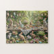 This enchanting artwork "Springtime Bunny Tea Party: A Whimsical Celebration of Easter Joy and Nature's Beauty" jigsaw puzzle depicts a whimsical springtime tea party hosted by bunnies in a vibrant Easter garden. The scene celebrates the joy of Easter with intricate details, from a beautifully set table adorned with cupcakes, carrots, and tea sets, to baskets overflowing with colorful eggs. The bunnies, dressed in their finest, interact harmoniously with playful chicks and a lush backdrop of blooming flowers. Every corner of this magical composition invites viewers to immerse themselves in a world of charm and tranquility, celebrating renewal, togetherness, and the simple pleasures of spring.