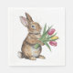 Tvätta vattenfärgsbunny med vår-tulpaner på vit bakgrund.