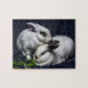 Muffinen har solbrända ringar runt om hans ögon, och stänk har mörkt öron och en fräkne på hans näsa. Lyckliga kaninbröder som tar ett ögonblick av allvarliga tankestunder dig, monterar pussel.
