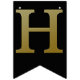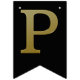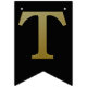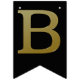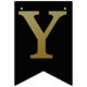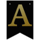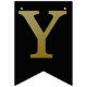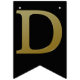 Guld simulerade metalliska brev på fast svart. Grattis på födelsedagen accentueras av flaggor med diagonalt guld rand.