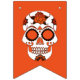 Coola Halloween buntbanderoll med orange och svart bakgrund, med grafik av en vit sockerskalle med orange och svarta blommor och vit text. Den vita texten, som står i mitten flaggor, på svart bakgrund, kan vara personlig att läsa vad du vill. Det finns tillgång till matchande pappra servetter, inbjudningar, pappert kopp och andra party-förråd.