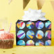 Mehrfarbige Kreise auf schwarzem Hintergrund schaffen eine ungewöhnliche, magische Stimmung für ein Geschenk.