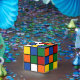 Faltschachtel mit bunten Quadraten. Würfel, Party-Gag, Dekoartikel zu allen lustigen Anlässen.
