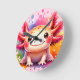 Buntes lächelndes Axolotl als Grafik Rund Klocka