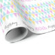 Dagligen buntade triangulära flagga stil mönstrade figurerna idealiska för flickors födelsedagar eller andra tillfälle. Anpassa med din egen födelsedagsålder läser för närvarande Lycklig 60-årsdagen. Svälla pappert i färgfulla pastellskuggor på vitt. Designad av Sarah Trett.