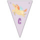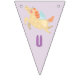 Tillfoga ditt egna beställnings- meddelande, eller namn till detta toppna gulligt stränger av papper partyflaggor eller baner. Triangeln formade flaggor har en lavendelbakgrund och presenterar en gullig tecknadillustration av en lycklig unicorn. Detomma fälten gör det lätt att personifiera detta baner med ditt egna meddelande. Dessa festar koordinaten med andra objekt i våra Unicorndrömmar samlingen.