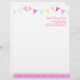 Professionell party planner business or roligt usual lethead in rosa and lila, aqua and gult. Perfekt för professionellens evenemangsplanerare, underhållningsprogram eller endast för vardaglig använda och evenemangsprogram. Redigera det här brevhuvudet med ditt namn och din kontaktinformation. Unik design av Sarah Trett.