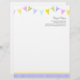 Professionell party planner business or roligt usual lethead in lila, grått gult and aqua grönt blue hues. Perfekt för professionellens evenemangsplanerare, underhållningsprogram eller endast för vardaglig använda och evenemangsprogram. Redigera det här brevhuvudet med ditt namn och din kontaktinformation. Unik design av Sarah Trett.