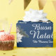 Den här helgdag som omsluter papper har ett italienskt jultema med vattenfärgade blommor över en mörk blått bakgrund. Uttrycket Buon Natale, som översätts till "God jul" i Italien, skrivs ut i ett elegant-skript över grund. En vinterbukett av vita poinsettias, gräs grenar, gräs och vintern blommigt visas ovanför buonnatale hälsning. En exempelfamilj namn skrivs ut i grund, som du kan anpassa för att inkludera ditt eget namn eller annan text.