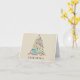 Italienskt julkort (biglietto natale) med italienskt julhälsning (Buon Natale, god jul på italienska) snöflingor och julgran. Inkluderar italienskt julmeddelande på insidan (Buon Natale).