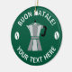 Buon Natale Moka Pot Christmas tree ornament. Vintage Italian coffee maker drawing with custom greeting.