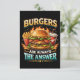 En aptitretande cheeseburgare med pommes frites och läsk brinner med eldig flärd i en djärv retroinspirerad dinerstil.