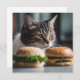 En serene tabby katt ligger lugnt, med två ostburgare placerade framför sig, som till synes väntar på perfektens ögonblick att ge efter. Kattens milda blickar är själviskt, borttappad i tanke på att den överväger hur utsökt den är. Bildens enkelhet trotsar dess charm, eftersom de subtila detaljerna i kattens päls och den tanklösa komen av burgare tillsammans skapar en strålande synbehandling. Den här designen är skapat med AI-teknik och finns på en mängd olika Zazzle-produkter, från kläder till hemdekor och mer, redo för att få en beröring av kattdjur stollig till ditt dagliga liv