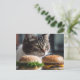 En serene tabby katt ligger lugnt, med två ostburgare placerade framför sig, som till synes väntar på perfektens ögonblick att ge efter. Kattens milda blickar är själviskt, borttappad i tanke på att den överväger hur utsökt den är. Bildens enkelhet trotsar dess charm, eftersom de subtila detaljerna i kattens päls och den tanklösa komen av burgare tillsammans skapar en strålande synbehandling. Den här designen är skapat med AI-teknik och finns på en mängd olika Zazzle-produkter, från kläder till hemdekor och mer, redo för att få en beröring av kattdjur stollig till ditt dagliga liv