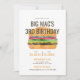 Burgers, det bästa sättet att fira din födelsedag... eller något annat! Inbjudan lyder: Big Mac's tredje födelsedag (men du kan redigera det här till kostym för din händelse) Kontakta mig på claudia@claudiaowen.com om du vill anpassa inbjudan. Besök min Zazzle-butik http://www.zazzle.com/claudiaowenshop Design via claudiaowen.com