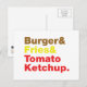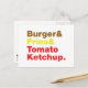 Funny Foodie Fast Food Humor ~ Burger och Fries och Tomato Ketchup. Globe Trotters specialiserar sig på idiosynkratiskt bildmaterial från hela världen. Här hittar du unika hälsningskort, vykort, Poster, Mousepads med mera.