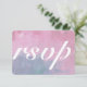 Burgund och marinblå RSVP-kort med original vattenfärg bakgrund, baksidan har plats för gästerna att skriva sina namn, om de kan komma eller inte, och vad de vill ha för måltid.