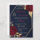burgundblommor guld, geometrisk marin bröllop inbjudningar