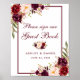 Burgundisk blomsterbröllop gästboksposter poster