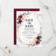 Burgunder Blommig Marmor Geometrisk Bröllop Spara Datumet